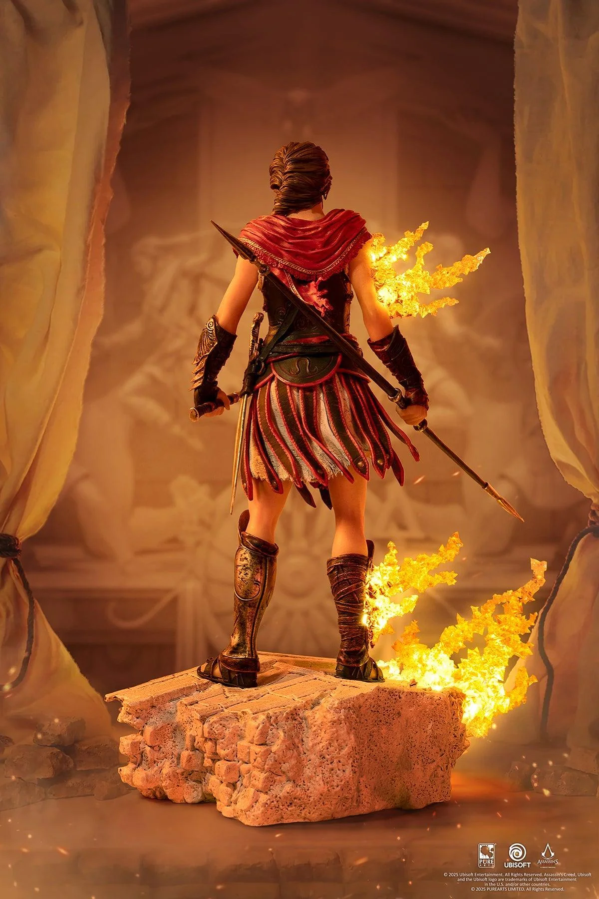 The iconic PureArts Animus Kassandra ¼ Scale Statue, now in a 1/8 Scale Statue! Deadly Spartan mercenary and Assassin’s Creed Odyssey protagonist Kassandra is ready for battle with her Misthios battle attire and broken spear atop an Ancient Greece-inspired base depicting Alexios in battle. The quintessential PureArts animus-LED effect representing the bridge between past and present materializes from Kassandra’s left side. Standing at 11 inches tall, the Animus Kassandra 1/8 Scale Statue is the perfect size for any Assassin’s Creed fans’ set up!