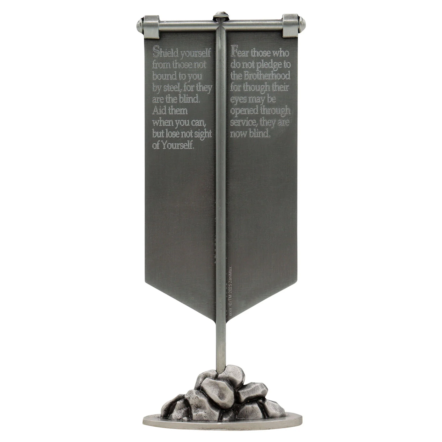 No power armour required to display your devotion to the brotherhood cause, this mini metal banner has you covered. Compact and tabletop-sized, it’s perfect for guarding your workstation, game room, or shelf like a loyal Scribe watching over the archives!